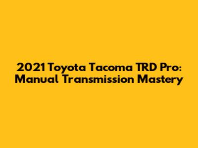 2021 Toyota Tacoma TRD Pro: Manual Transmission Mastery