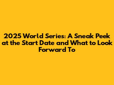 2025 World Series: Start Date & What To Expect