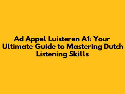Hey guys! Ready to dive into the world of Dutch language learning? Today, we're focusing on "Ad Appel Luisteren A1," which translates to "Listen to Ad Appel A1." This is a fantastic resource for anyone beginning their journey into understanding spoken Dutch. Whether you're a student, a traveler, or just someone curious about the language, mastering listening skills is super important. In this guide, we'll break down everything you need to know about "Ad Appel Luisteren A1," from what it is, where to find it, and how to use it effectively. Let's get started!