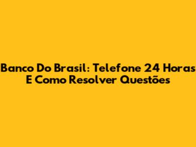 Banco Do Brasil: Telefone 24 Horas E Como Resolver Questões
