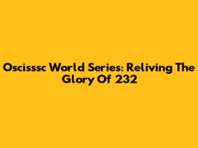 Oscisssc World Series: Reliving The Glory Of '232'