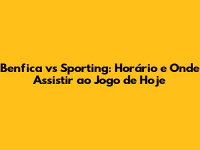 Benfica Vs Sporting: Horário E Onde Assistir Ao Jogo De Hoje