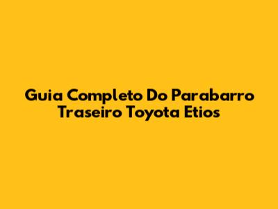 Guia Completo Do Parabarro Traseiro Toyota Etios