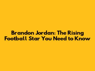 Brandon Jordan: The Rising Football Star You Need To Know