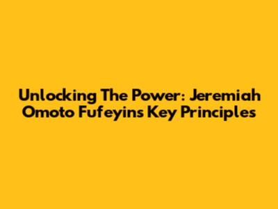 Unlocking The Power: Jeremiah Omoto Fufeyin's Key Principles