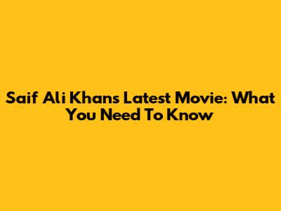 Saif Ali Khan's Latest Movie: What You Need To Know