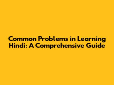 Common Problems In Learning Hindi: A Comprehensive Guide