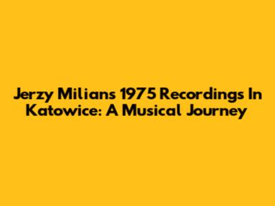 Jerzy Milian's 1975 Recordings In Katowice: A Musical Journey