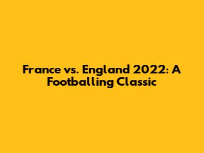 Hey guys! Let's dive deep into one of the most talked-about football matches of recent times: the France vs. England clash of 2022. This wasn't just any game; it was a high-stakes quarter-final in the FIFA World Cup, filled with drama, tactical brilliance, and heart-stopping moments. For fans around the globe, this match was a pure spectacle, offering a glimpse into the pinnacle of international football. From the pre-match buzz to the final whistle, the atmosphere was electric, with both teams showcasing their strengths and battling for a coveted spot in the semi-finals. We'll explore the key players, the tactical nuances, and the unforgettable moments that defined this epic encounter. Whether you're a die-hard football fanatic or just a casual observer, the France vs. England match of 2022 had something to offer everyone. This game had it all, and it's a testament to the beautiful game's unpredictable and captivating nature. Ready to relive the excitement? Let's get started!