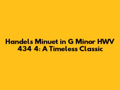 In conclusion, Handel's Minuet in G Minor HWV 434 4 is more than just a piece of classical music; it's a cultural touchstone. Its simple yet elegant melody, its emotional depth, and its timeless quality have made it a favorite of music lovers for generations. It's a testament to Handel's genius and a reminder of the power of music to move and inspire us.