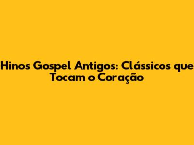 Quais são os hinos gospel antigos mais tocados? Essa é uma pergunta que desperta curiosidade e emoção em muitos de nós. Para responder a essa questão, vamos embarcar em uma viagem no tempo, relembrando alguns dos hinos que marcaram época e que ainda hoje são lembrados e cantados com carinho. É claro que a lista de hinos mais tocados pode variar dependendo da região, da igreja e das preferências individuais, mas alguns clássicos são unânimes e atravessam gerações. Vamos mergulhar nessa lista e relembrar alguns desses hinos inesquecíveis!
