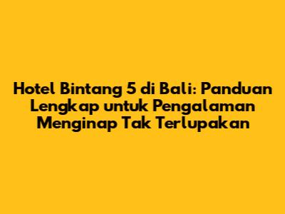 Hai guys! Bali, pulau dewata yang mempesona, memang selalu menjadi destinasi favorit bagi para wisatawan dari seluruh dunia. Keindahan alamnya yang luar biasa, mulai dari pantai berpasir putih hingga sawah hijau yang memanjakan mata, selalu berhasil memikat hati siapa saja yang datang. Tapi, selain keindahan alamnya, Bali juga terkenal dengan pilihan akomodasi yang sangat beragam, mulai dari losmen sederhana hingga hotel bintang 5 yang menawarkan kemewahan dan pelayanan kelas dunia. Nah, buat kalian yang sedang merencanakan liburan mewah di Bali, kali ini kita akan membahas secara mendalam tentang hotel bintang 5 di Bali, mulai dari rekomendasi terbaik, fasilitas yang ditawarkan, hingga tips memilih yang sesuai dengan kebutuhan dan budget kalian.