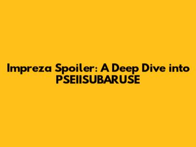 Impreza Spoiler: A Deep Dive Into PSEIISUBARUSE