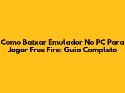 Como Baixar Emulador No PC Para Jogar Free Fire: Guia Completo