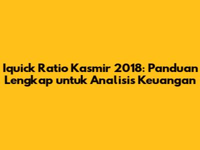 Iquick Ratio Kasmir 2018: Panduan Lengkap Untuk Analisis Keuangan