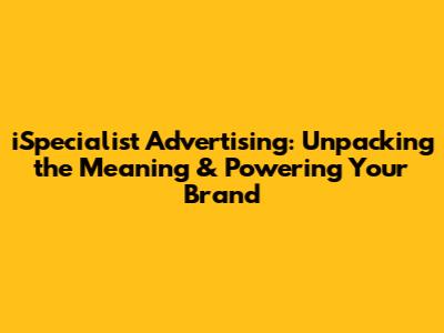 Hey there, digital marketing enthusiasts! Ever heard of iSpecialist advertising and wondered what it's all about? Well, you're in the right place. We're going to dive deep into the meaning, the strategies, and the real-world impact of iSpecialist advertising. Think of it as your ultimate guide to understanding and leveraging this powerful marketing approach to grow your business. Get ready to unlock the secrets to a more successful and impactful advertising campaign. This will equip you with the knowledge to make informed decisions and skyrocket your brand's visibility. Let's get started, guys!
