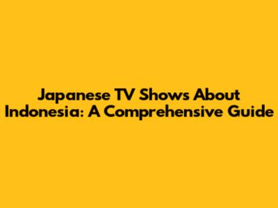 Japanese TV Shows About Indonesia: A Comprehensive Guide