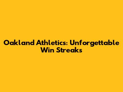 Oakland Athletics: Unforgettable Win Streaks