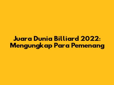 Untuk mengetahui siapa saja yang berhasil meraih gelar juara dunia billiard pada tahun 2022, mari kita simak daftar para pemenang dari berbagai kategori yang telah disebutkan di atas. Daftar ini akan memberikan gambaran lengkap tentang pemain-pemain terbaik dunia yang telah menunjukkan kemampuan luar biasa mereka di panggung dunia billiard. Berikut adalah daftar para juara dunia billiard 2022, beserta kategori yang mereka menangkan: