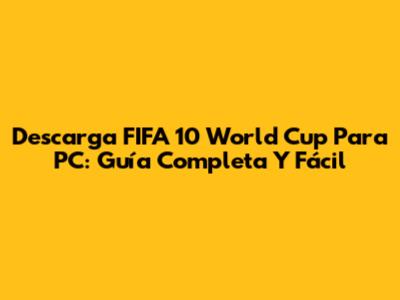 Descarga FIFA 10 World Cup Para PC: Guía Completa Y Fácil