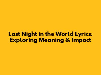 Let’s also dive into "[Insert a third lyric]". This could show the artist’s own thoughts or feelings. The words can be simple, but they hold so much meaning. This kind of writing shows a connection between the singer and the listener, making the song feel intimate and real. It's like the artist is sharing their secret thoughts with us, which makes the song stand out. When you focus on these lyrics, you start to see that the lyrics to "Last Night in the World" are all connected. They show the different sides of the human experience. They talk about love, loss, and self-discovery. Each line may work on its own, but it is also a part of the bigger story. It's like putting the pieces of a puzzle together to find the true meaning of the song. This is why the song is so popular among its fans.