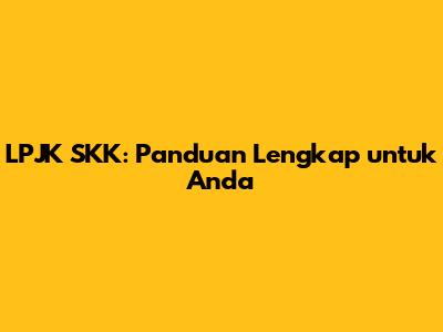Apa Itu LPJK SKK? Kenalan Dulu Yuk!