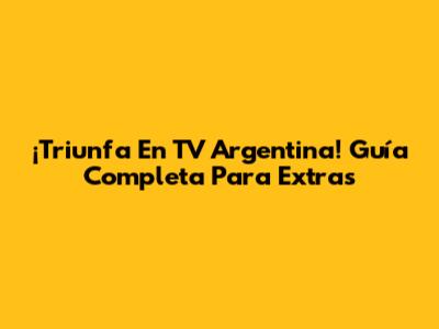 ¡Triunfa En TV Argentina! Guía Completa Para Extras
