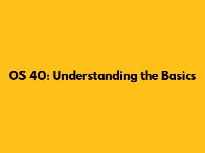 OS 40: Understanding The Basics