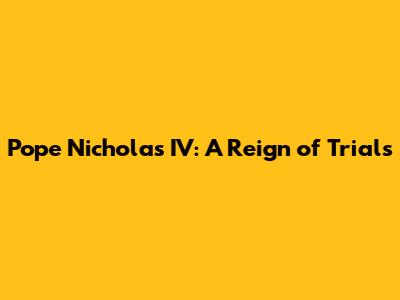 Pope Nicholas IV: A Reign Of Trials