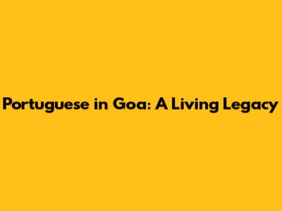 Portuguese In Goa: A Living Legacy