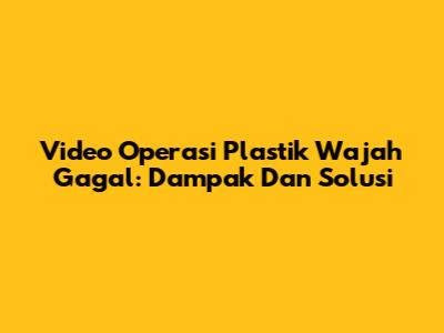 Video Operasi Plastik Wajah Gagal: Dampak Dan Solusi