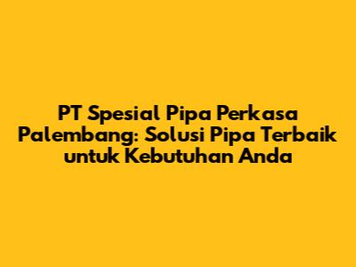 PT Spesial Pipa Perkasa Palembang adalah mitra yang tepat untuk semua kebutuhan perpipaan Anda. Dengan pengalaman, produk berkualitas, dan pelayanan pelanggan yang prima, mereka siap memberikan solusi terbaik untuk Anda. Jadi, jangan ragu untuk menghubungi mereka sekarang juga! Mereka adalah solusi pipa terbaik di Palembang, guys! Percayakan kebutuhan pipa Anda pada ahlinya, dan nikmati hasil yang memuaskan.