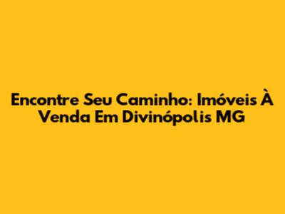 Encontre Seu Caminho: Imóveis À Venda Em Divinópolis MG