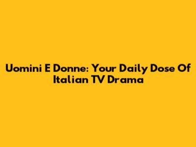 Uomini E Donne: Your Daily Dose Of Italian TV Drama