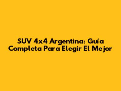 SUV 4x4 Argentina: Guía Completa Para Elegir El Mejor