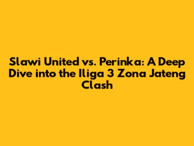 Hey sports fans! Get ready to dive deep into the electrifying world of Indonesian football as we dissect the upcoming clash between Slawi United and Perinka in the Iliga 3 Zona Jateng. This match promises to be a thrilling encounter, filled with passion, skill, and the relentless pursuit of victory. Let's break down everything you need to know about this exciting fixture, from team overviews and key player spotlights to potential strategies and what fans can expect on game day. This is your ultimate guide to the Slawi United vs. Perinka showdown!