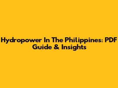 Hydropower In The Philippines: PDF Guide & Insights