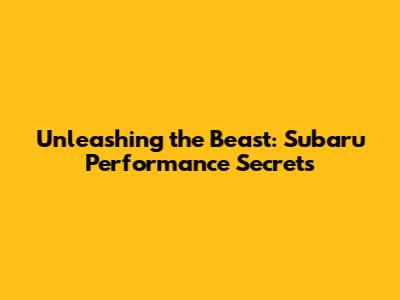 Unleashing The Beast: Subaru Performance Secrets