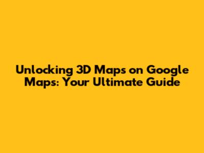 Enabling 3D View on Google Maps: A Step-by-Step Guide