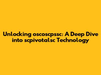 Unlocking Oscoscpssc: A Deep Dive Into Scpivotalsc Technology