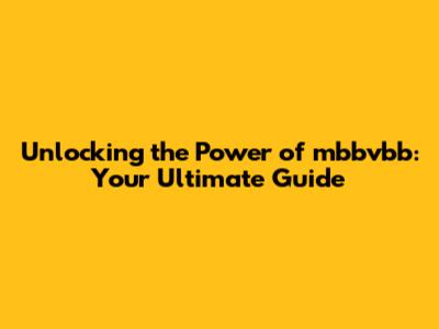 Unlocking The Power Of Mbbvbb: Your Ultimate Guide