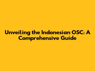 Unveiling The Indonesian OSC: A Comprehensive Guide