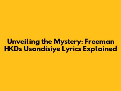 Hey music lovers! Ever stumbled upon a track that just hits you, even if you don't fully understand the words? That's the feeling many of us get with Freeman HKD's music, especially when we dive into his track, "Usandisiye." The song has a real groove, the kind that makes you want to move, and the lyrics? Well, that's where the intrigue lies. Today, we're going to embark on a journey of exploration. We are going to try to unravel the meaning behind Freeman HKD's "Usandisiye" lyrics, diving deep into the possible interpretations and what makes this song so captivating for so many people. If you're ready, let's go!