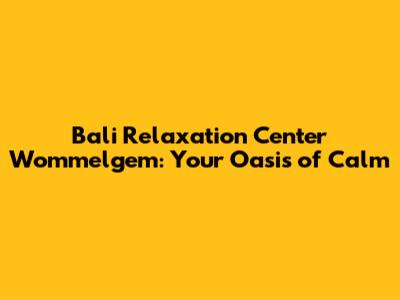 Unwind & Rejuvenate: Bali Relaxation Center In Wommelgem